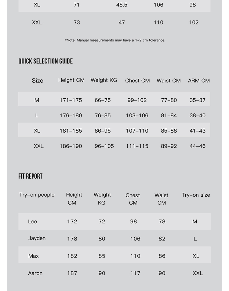 S, M, L, XL, XXL
