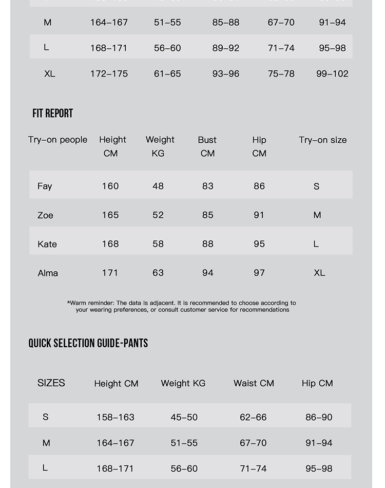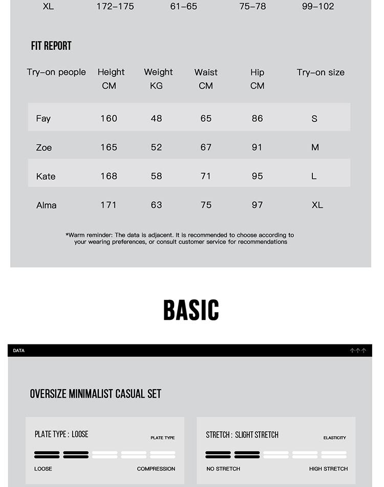 S, M, L, XL