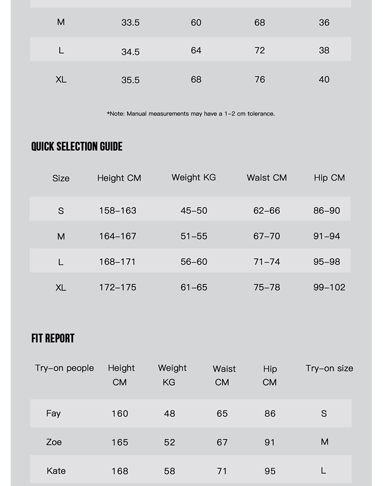 S, M, L, XL
