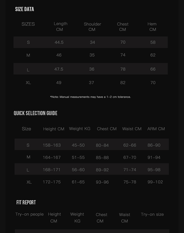 S, M, L, XL