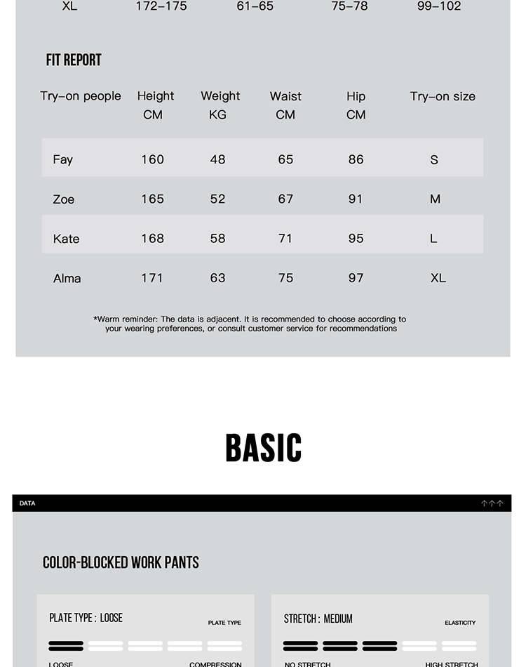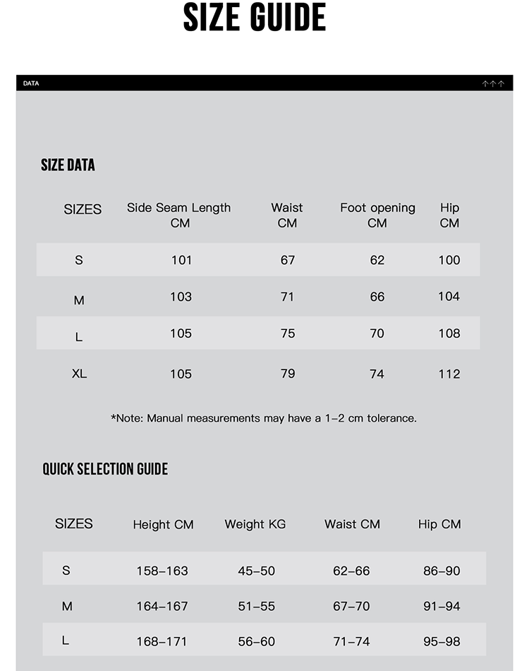 XS, S, M, L, XL